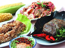 ●鴻園雲南美食 .價格:涼拌叉燒(100元)、豬腦煎蛋(70元)、脆皮鍋燒(150元)、葉子包肉(100元)、鍋子菜湯(150元)、醃菜炒肉(100元) .地址:中和市忠孝街2-7號 .電話:02-2944-4391 |